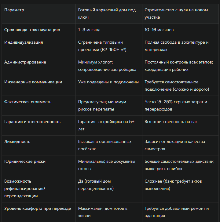 Ключевое отличие 2025 года — ужесточение требований к регистрации, энергоэффективности и документированию. Самостроительство стало заметно сложнее и дороже, тогда как покупка готового каркасного дома под ключ с коммуникациями и отделкой становится все более выгодным вариантом.